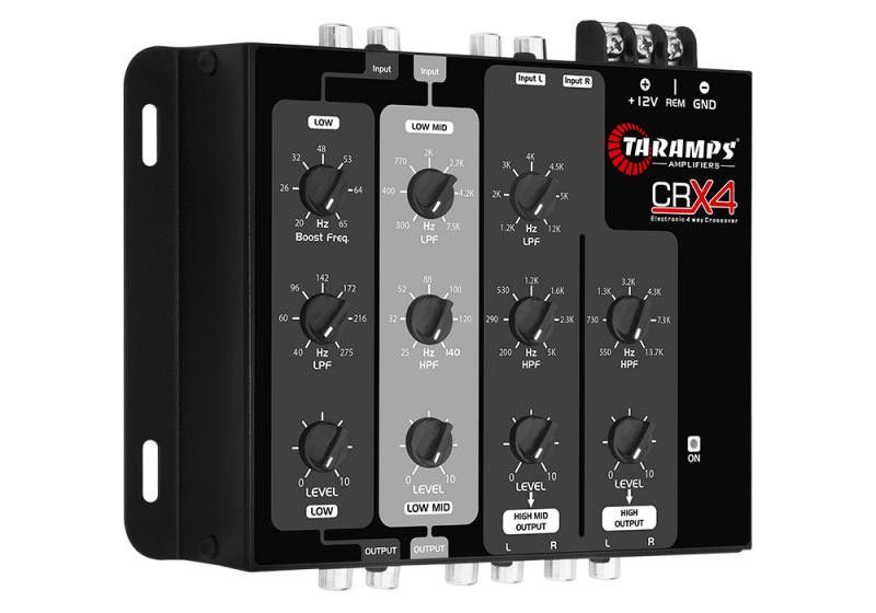 Cu scopul de a implementa calitatea, tehnologia și confiabilitatea, Taramps prezintă crossover-ul CRX4 pentru sistemele de sunet auto. Cu materie primă de înaltă calitate, este foarte versatil, având 4 căi cu setări variabile ale filtrelor HIGH PASS și LOW PASS, precum și control al nivelului de ieșire în fiecare fel, pe lângă BASS-BOOST reglabil pentru a împărți mai bine frecvențele în bass, midbass și high. Practicitate și performanță ridicată pentru sistemul dvs. de sunet pe care doar Taramps le poate oferi.